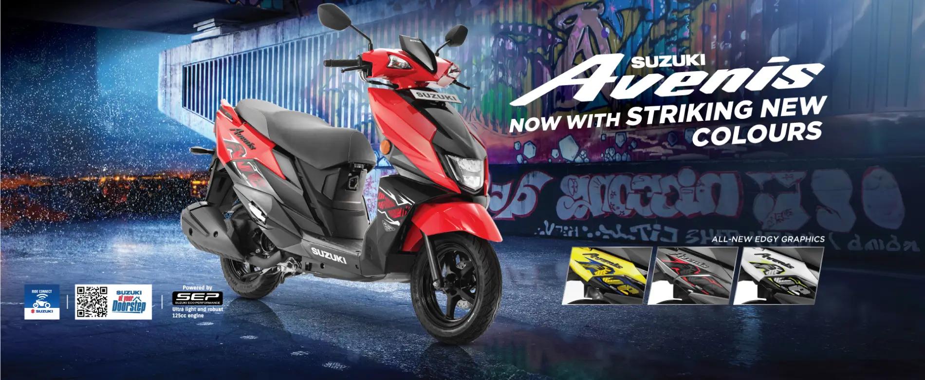 Your search for a Suzuki AVENIS dealer has brought you to Sri Aaravika Suzuki, Kattupakkam, Chennai, your one-stop destination to buy the new Suzuki AVENIS in Chennai ! Check out the on-road price, features, specifications, and accessories, and book a test ride online to experience everything on offer! Once you buy the Suzuki AVENIS, get ready for exhilarating rides every day. Offering top-notch features, specifications, and accessories, the Suzuki AVENIS delivers the perfect balance of powerful performance, stylish design, and fine craftsmanship. It also comes with a hassle-free and enjoyable ownership experience for years to come.